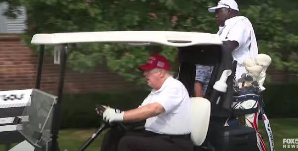 Also, we are not a golf aficionado , but we are pretty sure calling whatever low-rent Saudi tournament a simple "alternative" and saying there has been a "gold rush" probably carries about as much weight as when Trump says "there were a lot of people at my inauguration" or "I won the 2020 election" or "I won the 2016 election without reacharounds from Vladimir Putin."