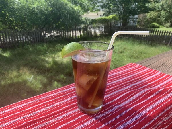 Cola: I taste-tested several brands of cola. Fentiman’s has some peculiar herbal notes I can’t quite identify. It tastes like a soda that wants to be cola, but doesn’t want to hang with the riff-raff. Not a fan. I have no idea what Moxie soda is, but it’s not cola and it’s not good. In the end, I settled on classic Mexican Coca-Cola for the mixer. Mexican cola uses cane syrup instead of corn syrup as its sweetener, which lets it marry up with rum much better. You don’t need a great deal of soda in your glass. I use less than a third of a bottle when I make this drink. However, the soda is the primary sweetener in the drink. You don’t want to go too light on the cola, or the cocktail won’t balance. I keep the bottle close at hand and refill my glass as I drink. It’s a great way to liberate a summer evening from the cares of the week. Jarritos makes a cola flavor, and there’s also the Mexicana agave cola. If you encounter another Mexican-made cola or a locally bottled cola sweetened without corn syrup, it’s worth a shot.