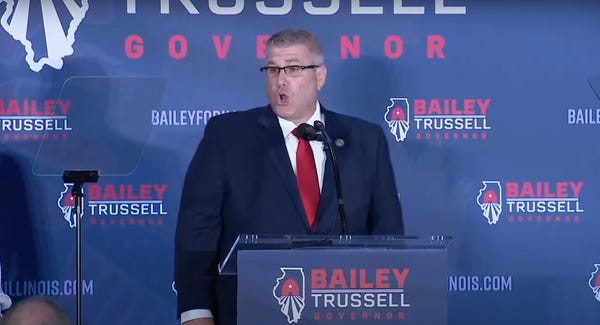 Bailey is one of the MAGA faithful who received unsolicited assisted from the Democratic Governors Association during the Republican primary. One of the DGA’s ads labeled Bailey a “pro-Trump Republican” who "sued to stop JB Pritzker's COVID mandates.” This is all gold for Republican primary voters.