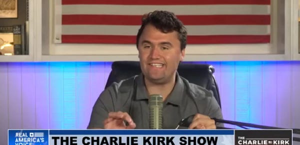 To be fair, nobody has ever said Charlie Kirk is a bright boy. Or a handsome boy or a good boy or a gonna break all the girls' hearts one day boy.