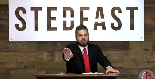 His name is Jonathan Shelley and he is some Dallas-area hick redneck who thinks the gays should be executed and LGBTQ+ people are child molesters and also they hate children and they "hate Baptists, they hate Christianity, and they hate God.” Specifically he's the pastor of the Stedfast Baptist Church in Watauga, Texas, which describes itself as an "independent fundamental King James Only Baptist church." If you know anything about fundamentalist Christians, that type of church is truly where brain cells go to die.