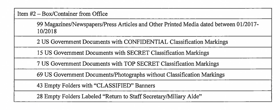 This can be generously interpreted as a huge FUCK AROUND AND FIND OUT for the plaintiff, since they knew damn well that this inventory makes Poppy Lightfingers look — what is the term — guilty as shit. But after spending three weeks screeching for more transparency, Trump's lawyers could hardly object. Which is how we wound up with this deeply incriminating document on the public docket.