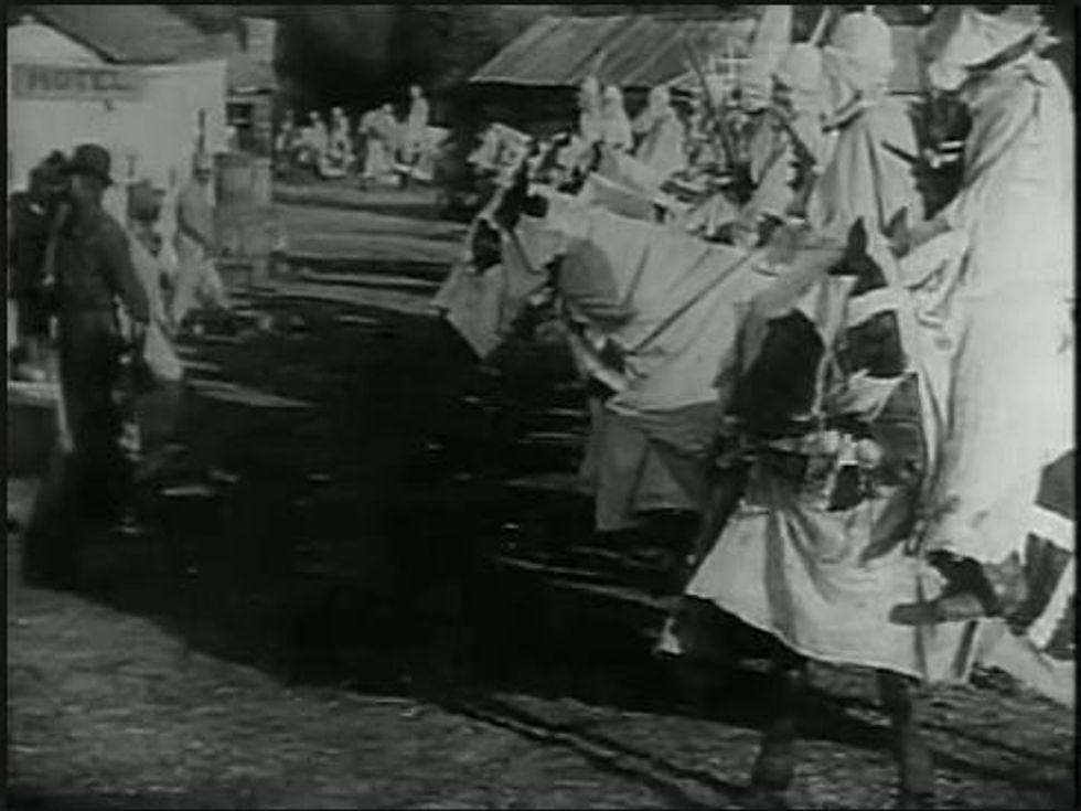 Hey, here's a picture of a scene at the end of Birth of a Nation . It is an election day where the MAGA types were very glad that the vote-counting would now be fair , because of how they were sitting outside the Black people's houses scaring them away from voting.