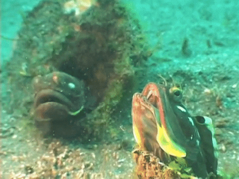 The great part about these fish, though, is how they fight. Once one of them decides an animal has gotten too close, it'll warn them by opening its mouth as wide as possible. Suddenly, this little brown fish gets much more interesting.