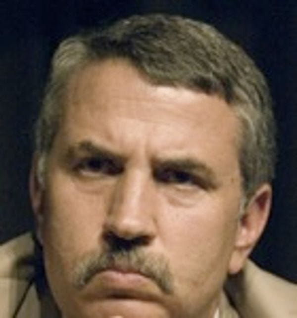 READ THIS REVIEW OF THOMAS FRIEDMAN: This is brutal and necessary. Ha, but it's from 2005. April Fools, etc. [ Matt Taibbi ]