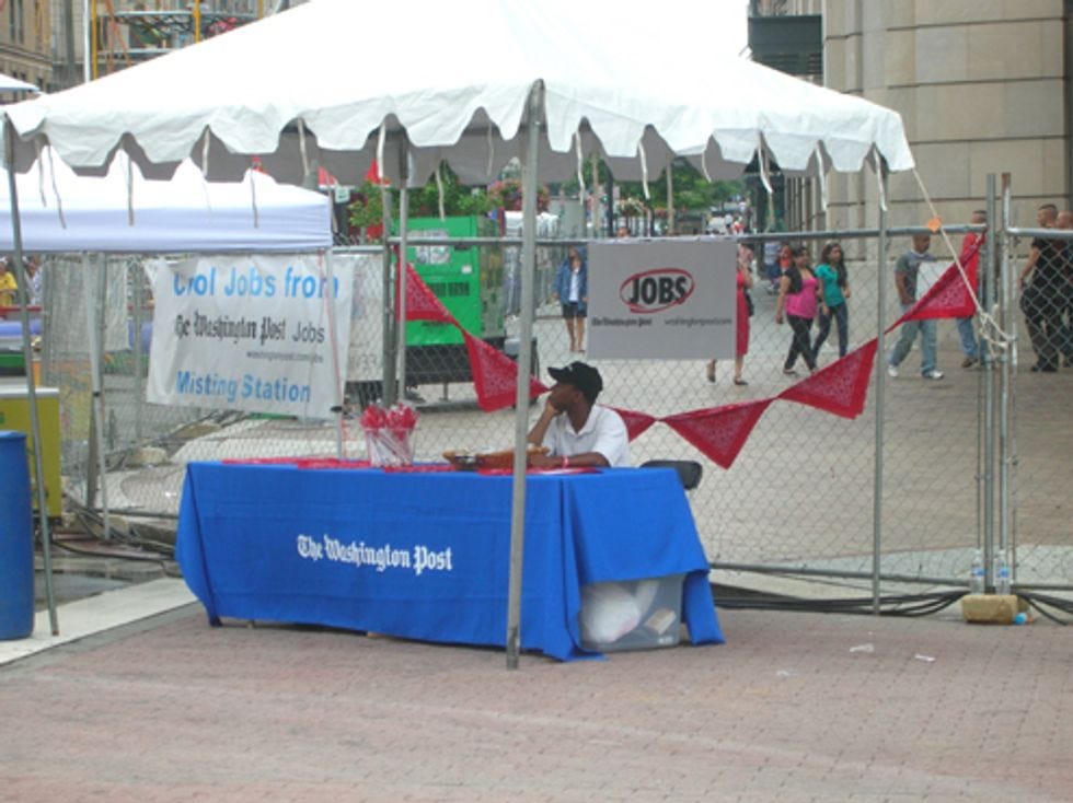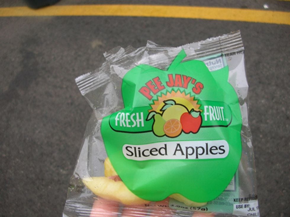 1: 10 PM --There is something suspicious about the free fresh fruit at the Washington Post booth. Arielle seeks out more Kettle Corn.