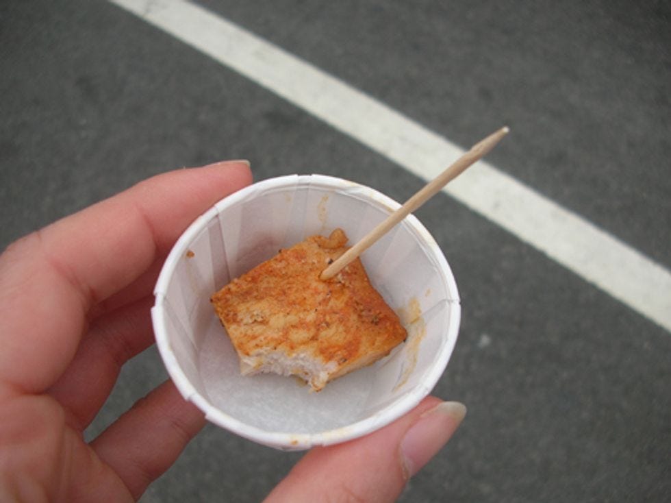 12: 55 PM -Arielle begins to feast on free samples. This is not Kettle Corn, so it must be pork.
