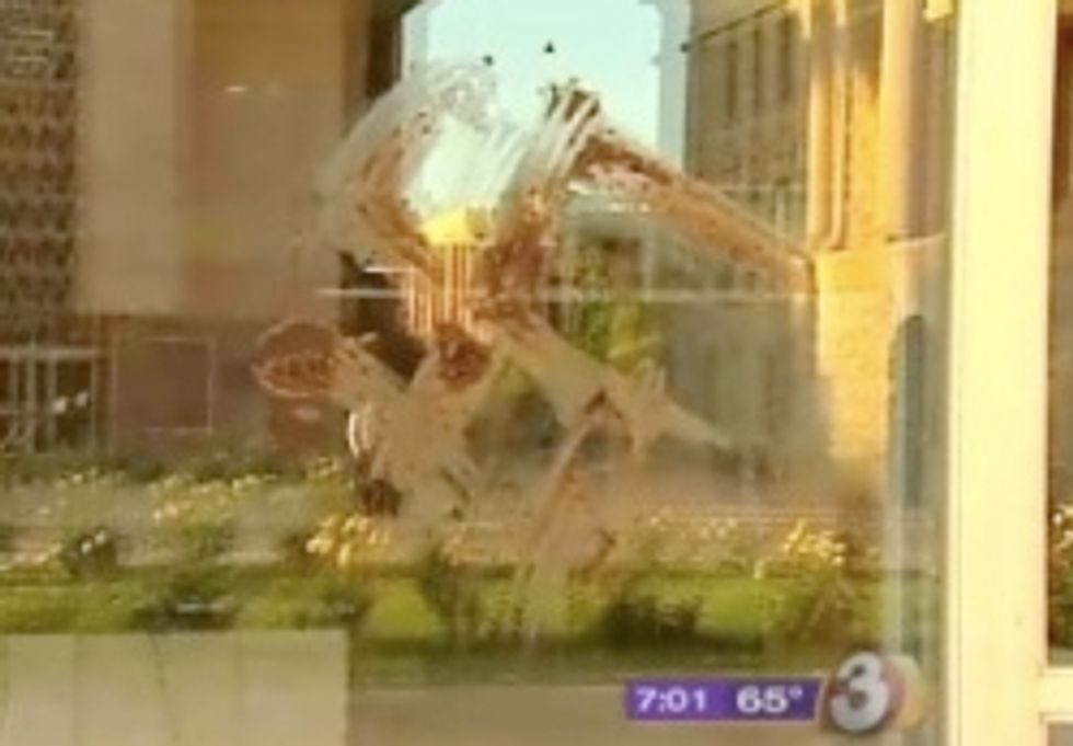 IS THIS A PROTEST FOR OR AGAINST THE LAW?"The conflict over a sweeping crackdown on illegal immigration in Arizona intensified Monday as vandals smeared refried beans in the shape of swastikas on the state Capitol's windows." No no that was just Nazi Lou Dobbs playing with his poopy.UPDATE: We have replaced the funnyactual image of Lou Dobbs with this one, of his poopy swastika. [ AP/TPM ]