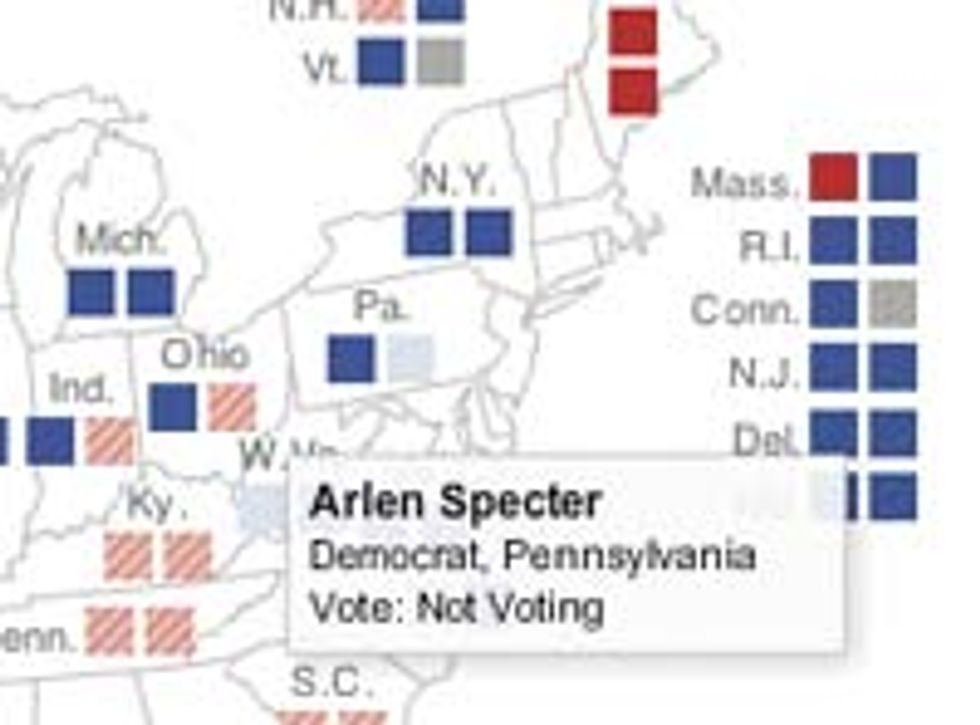 SOMEONE'S GOT SENIORITIS REAL BAD: Oh, hey, check out who was one of the two Senate Democrats who didn't bother showing up for last night's financial reform vote! HA HA VOTING ON THINGS IS FOR PEOPLE WHO GIVE A SHIT (and haven't had their hearts broken by a fickle electorate, boo hoo). The other Dem absentee was Robert Byrd, who may well have died weeks ago for all we know. Specter's surly, petulant absence required who knows what last-minute desperate promises to Chuck Grassley, the only non-New England Republican to vote for the bill. (A ban on criticism of Twitter misspellings? Sure, let's say that.)UPDATE: Smarty-pants commentor "rafflesinc" points out that Specter and Byrd were there for the cloture vote, which Grassley voted against. Christ, the Senate is confusing. I suppose the two of them just decided that since passage was assured they'd just go out behind the Capitol and do lines of Dutch Cleanser off the sidewalk. [NYT ]