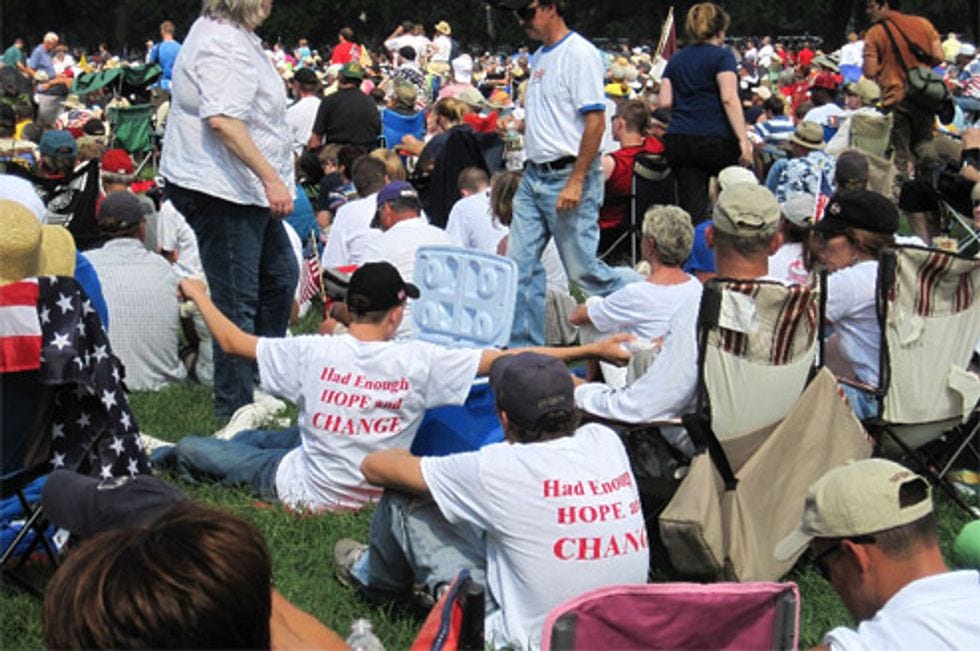 While there are no really important differences between the famous hippie-rock sexytime known as Woodstock and the fat old slobfest known as "A few thousand Glenn Beck viewers wheeled out on the lawn for a spell," historians say the two events are not exactly alike. For example, while millions of '60s People spun false memories of attending the rural New York music festival, absolutely no-one will ever claim, in years to come, to have attended GlennBeckPalooza.