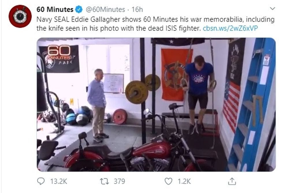 Navy SEAL Eddie Gallagher shows 60 Minutes his war memorabilia, including the knife seen in his photo with the dead… https: //t.co/rVpfDtwBxS