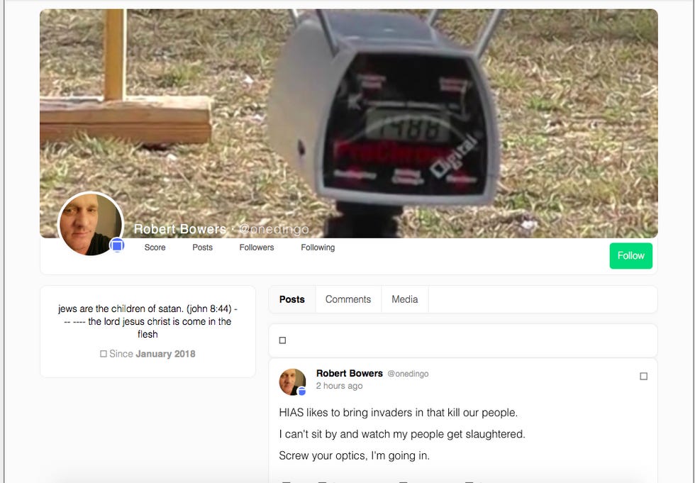 The Gab profile has since been deleted, but there are multiple screenshots and an archive of his social media activity.