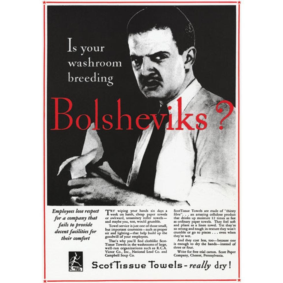 Once upon a time, as demonstrated by that poster above, rich business owners were so afraid that we'd revolt that tissue paper companies were able to suggest that even something like giving their employees substandard paper with which to dry their hands could drive them to revolt. Let's go back to that. Let's to go back to a time when politicians were so frightened that income inequality would lead to social upheaval that they made damn sure it didn't get that bad (well, made sure it wasn't bad for white people, anyway). Let them be scared of us and not the other way around.
