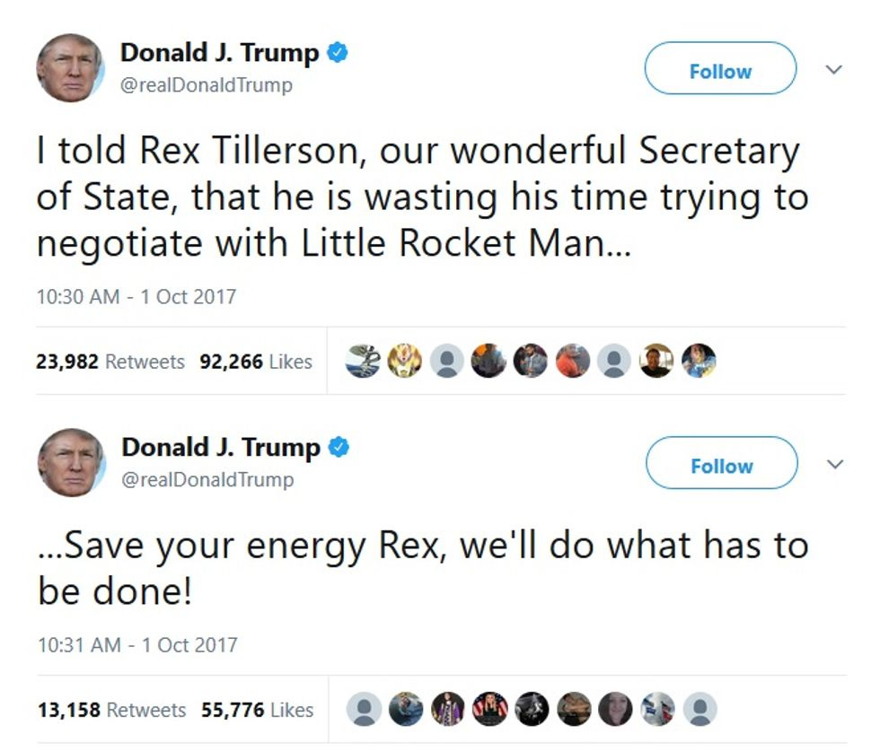 Also on Sunday morning, Donald Trump tweeted that Tillerson should STFU: