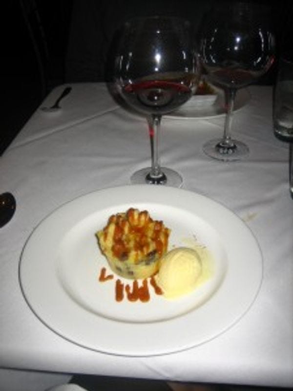 Order the warm apple-raisin, butter-drenched bread pudding if you can -- it comes with ice cream and a very sinful dulce de leche sauce.