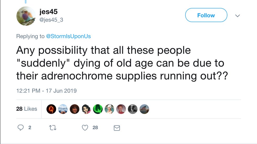 Unfortunately, we do not live in normal times. These days, no celebrity can die without it becoming the purview of the crazypants QAnon cult, followers of which believe that no one ever dies under normal circumstances, especially not 95-year-old ladies.