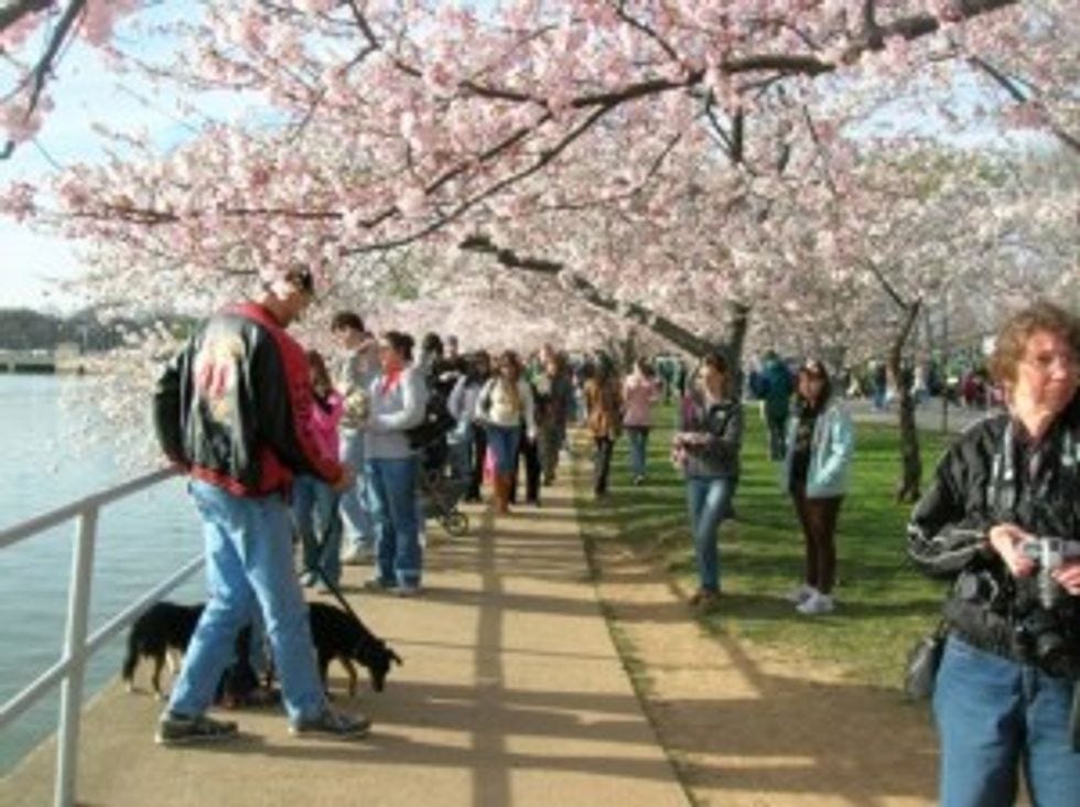 The cherry blossoms made their yearly appearance last week, but the motherfuckers only peaked for one day! That was it. One day of cherry blossom amazingness, eight days of ehh, and 14 days of non-stop tourists and their incredible ability to circle trees and just be in the way, period. This is the last time we ever accept gifts from Japan that are dependent on the weather. But, well, aren't the flowers just so pretty...