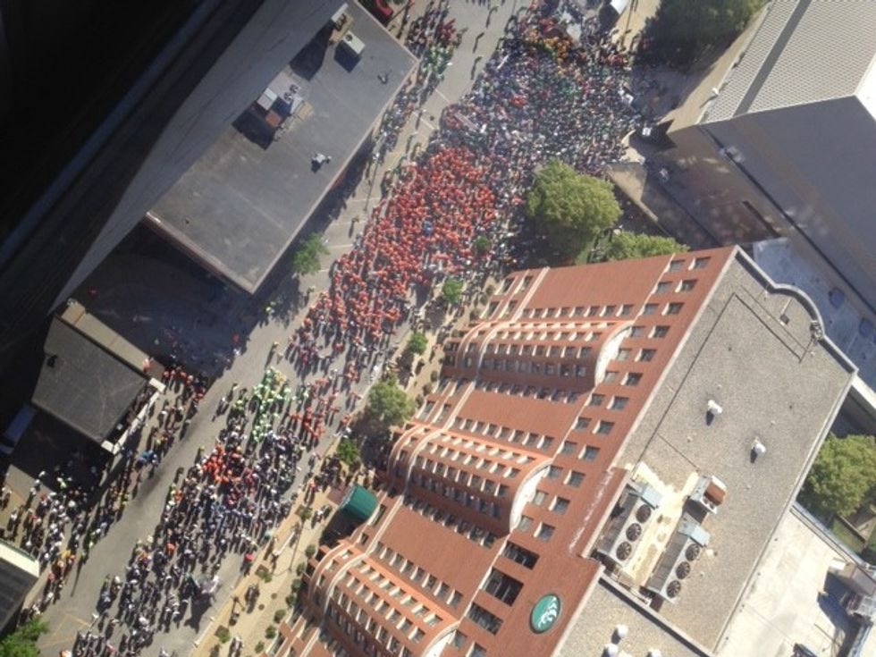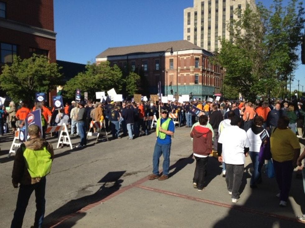 ANYHOOZLE, Scott Walker was there to speechify as a guest of the Illinois Chamber of Commerce. About three thousand radical marxist trade laborers, teachers, firefighters, and other public sector employees/Union Thugs turned out to welcome Governor Walker and offer a large bag of kettle-cooked chipotle dicks for him to eat.