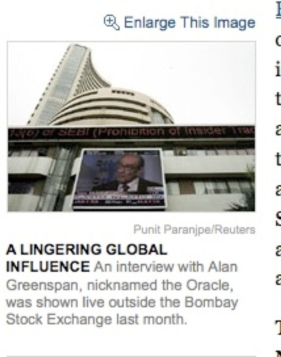 Here's America's "Maestro," Alan Greenspan, preaching about computerized risk models to the poor Indians. Hint for future alien generations: If everyone in charge of money & power designates one old fart as "The Oracle" and lets him determine all global policy... he might develop some hubris!