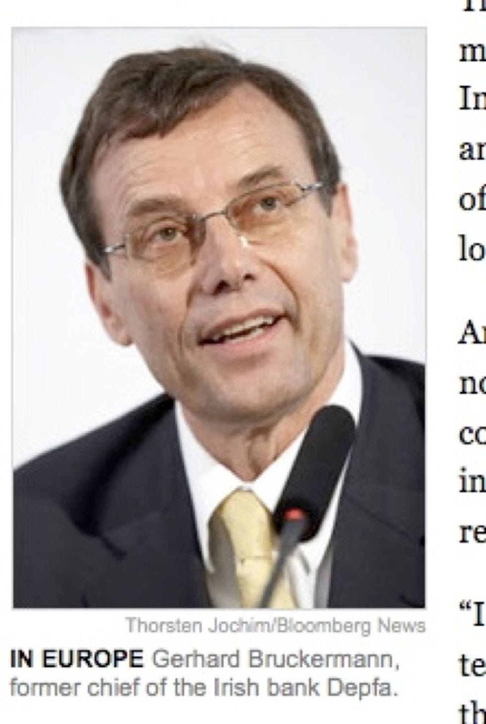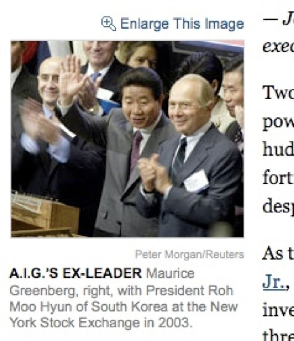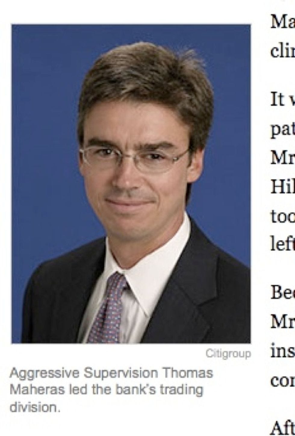 After the economy and capitalism completely died in September because one freaking company called "Lehman Bros." was denied billions of dollars from the Federal Government, the liberalNew York Timeshas been running a weekly-ish series called "The Reckoning" about the various Wall Street jackals -- i-bankers, hedge fund managers, risk-rating companies -- who pooled their talents together to somehow, magically, destroy the entire world with a mere HOUSING PROBLEM. All of the articles in this series are well reported and subtly vilifying. The best part about reading them, though, comes as you scroll down to the fifth or sixth paragraph and see an accompanying picture of some douchebag you've never heard of with a caption describing how this person ruined your life. We've compiled screenshots of these instances from many stories in "The Reckoning" series and blown them up, to heighten the embarrassment.
