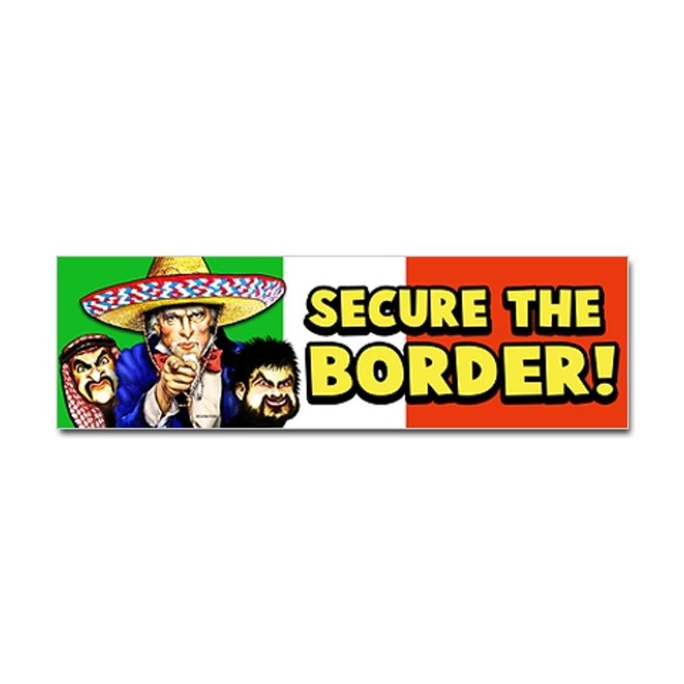 If your dad’s firearms aren’t enough to keep the illegals away, Sombrero Sam and his friends Arab El-Stereotype and Mustachio Jose will help him protect the Italian (?) flag with this bumper sticker: