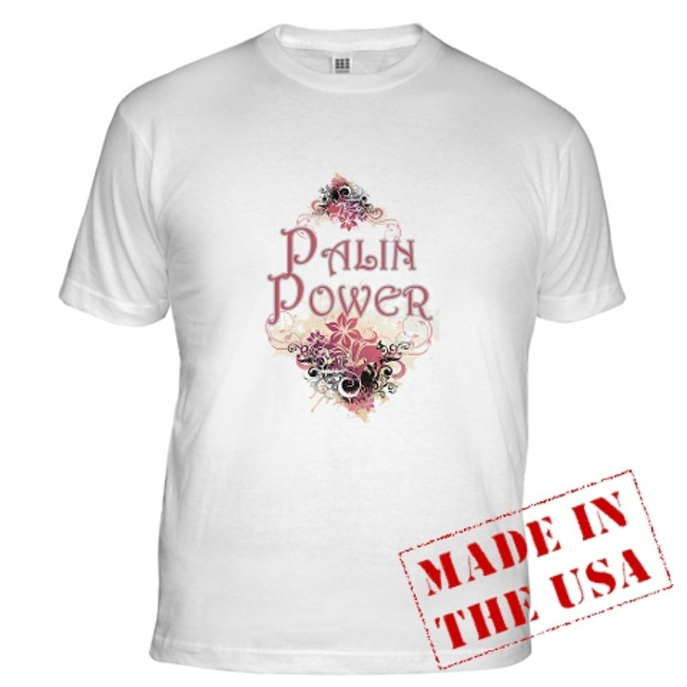 Is Dad a bit of a sissy? Then he will enjoy this pretty-in-pink "Palin Power" T-shirt, which doesn't even have to do with breast cancer or anything, it's just fey as the dickens: