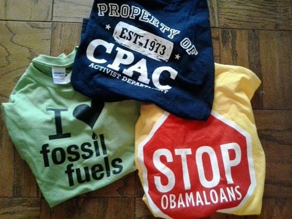 CPAC offers conservative organizations a three-day window in which to reach the most receptive possible audience. How to make an impression when there are so many competing messages? Be armed with compelling information and persuasive arguments? Sure, that might work! Just to be safe, many also came with boxes full of premium conservative tchotchkes.
