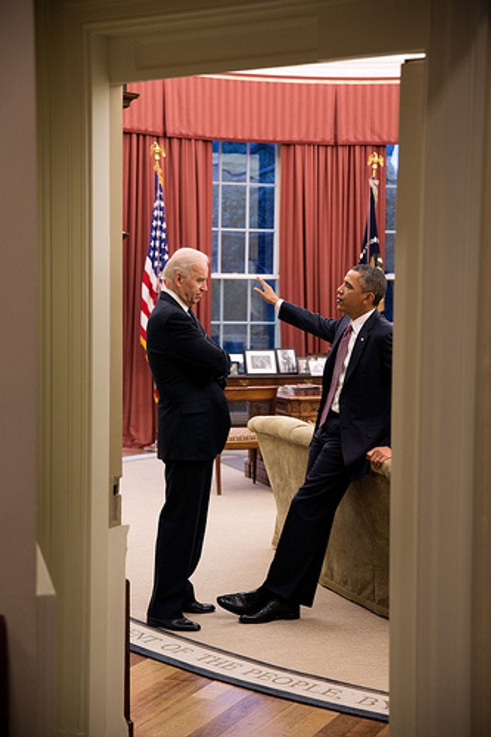 But why is mean old Barack Obama dressing down Old Handome Joe Biden in this picture? Is it for showing him up by being too awesome? Duh. Of course it is.