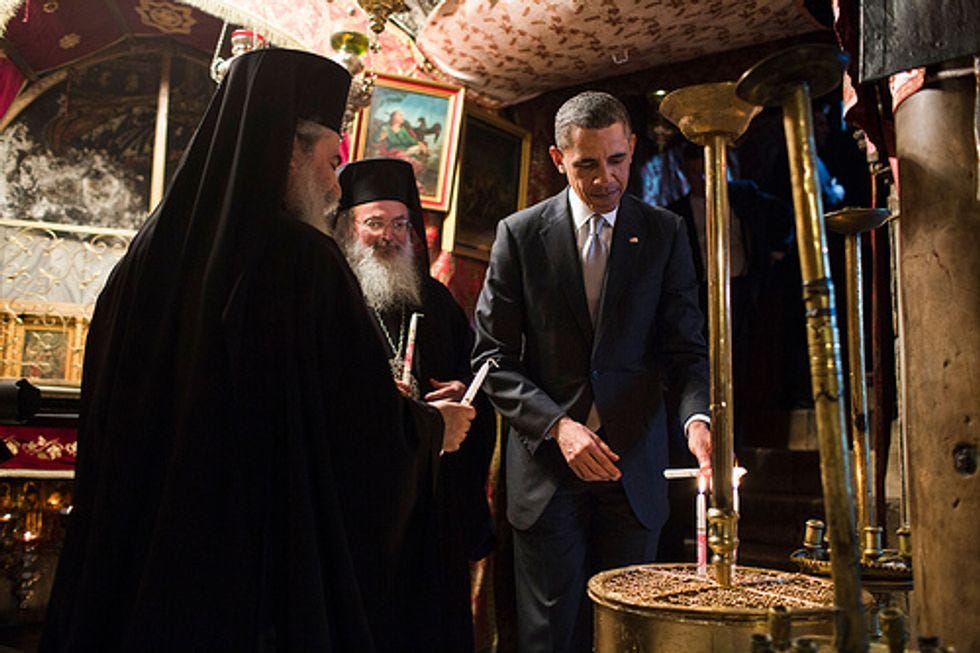 In this picture, Barack Hussein Obama meets with Jerusalem witches.