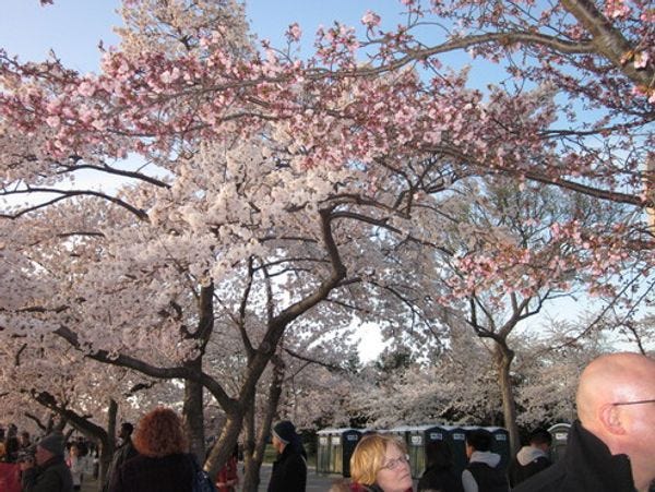 It turns out that Japan gave the United States 3,000 flower trees in 1912 to celebrate our burgeoning friendship, which we would later ruin. BUT THE JAPANESE ARE RESILIENT: They came back and gave us another 4,000 trees in 1964. Wikipedia doesn't really explain why Japan gave us more flowering trees, but we can only assume that the first batch died because funding for watering plants was cut after an undercover video of a gardener over-watering the blossoms surfaced. Who really knows.