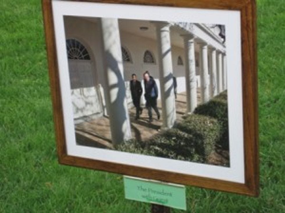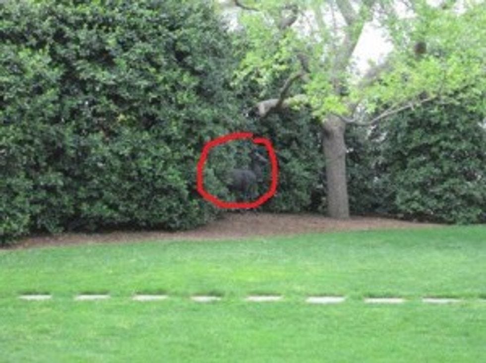 One of the great leaders of this fine nation thought it was necessary to put a fake deer on the South Lawn, to ward off terrorists and other evil perhaps? It sits 10 feet from Sasha and Malia's swing set.