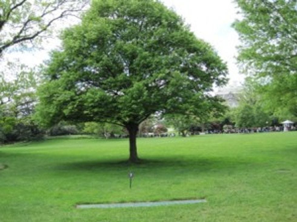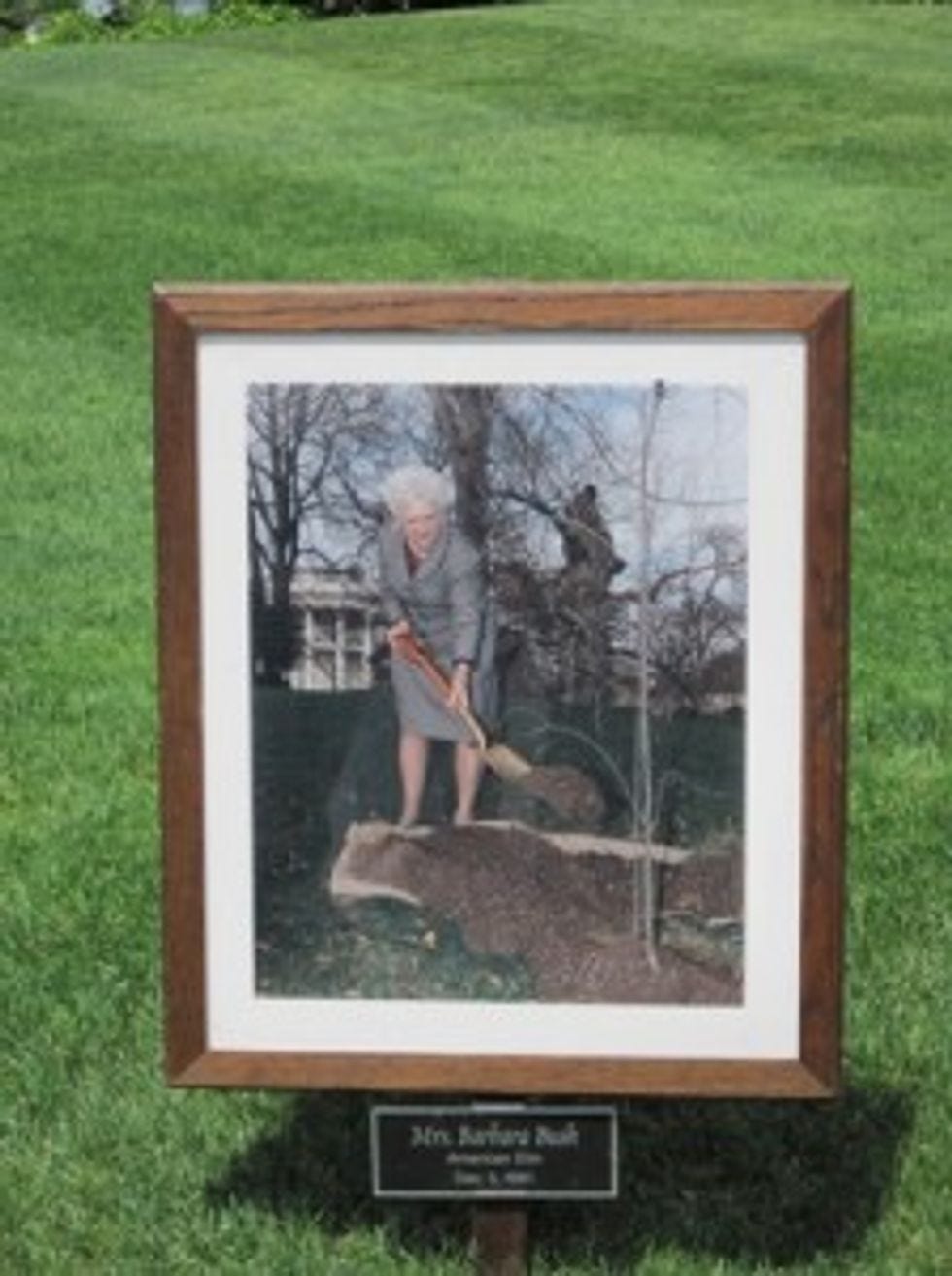 Who knew that our Historical First Ladies (and Queen Elizabeth) were such arborists? For centuries, patriotic ladies have cultivated the White House gardens by shoveling dirt atop already planted trees -- and their efforts have made our Nation's Capital safe and tourist friendly. The White House gardeners also helped, by actually planting the trees.