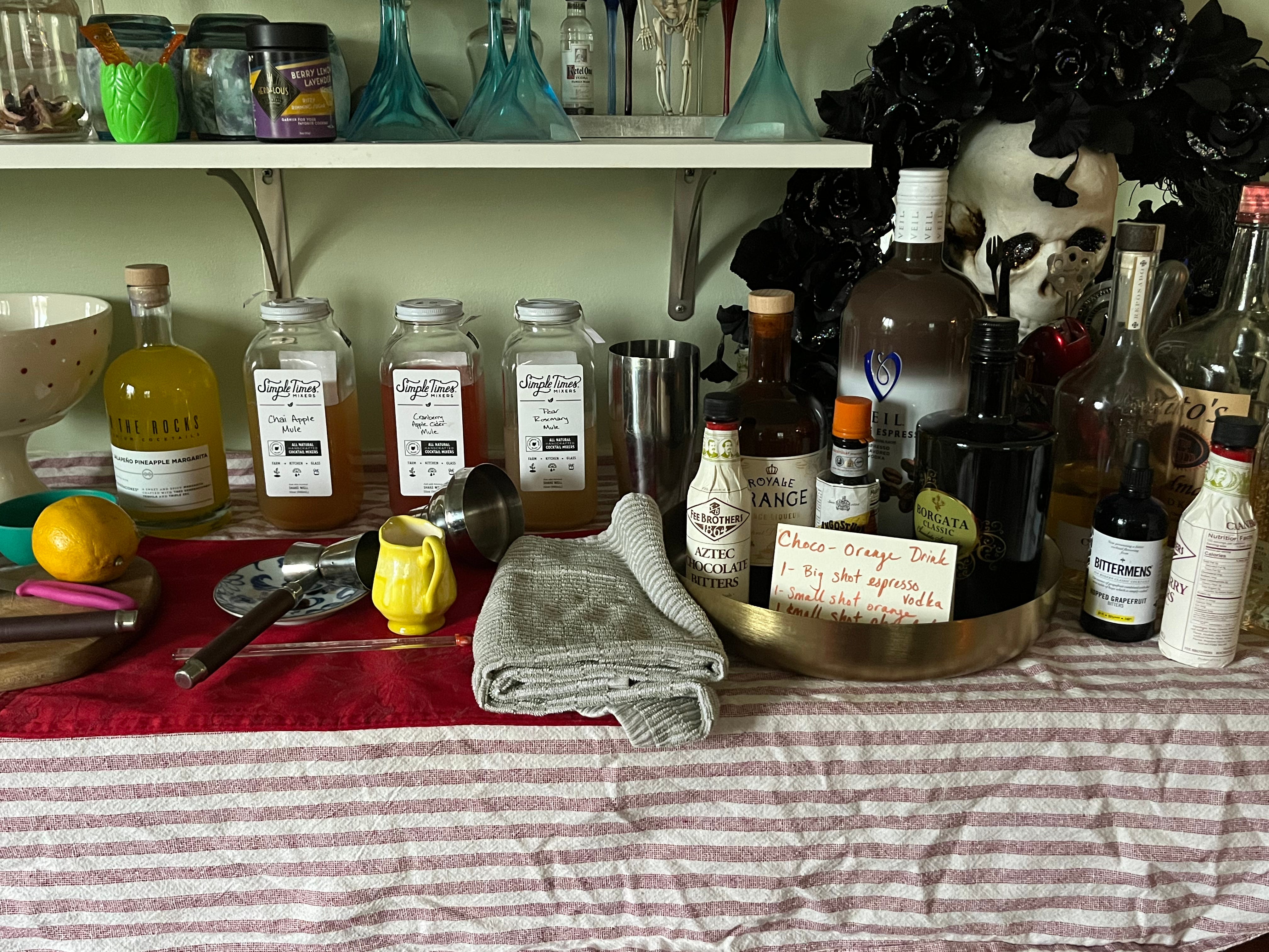 I made up a cocktail! And put out a little note card with a tray of the ingredients and how to make it! Only one guest did it, but she said it was good! It did not have a snazzy name, so I called it “Choco-Orange Drink,” I was all out of brain snazz. It was!
