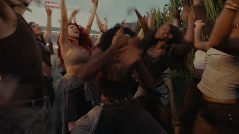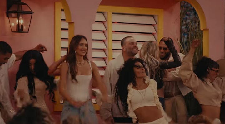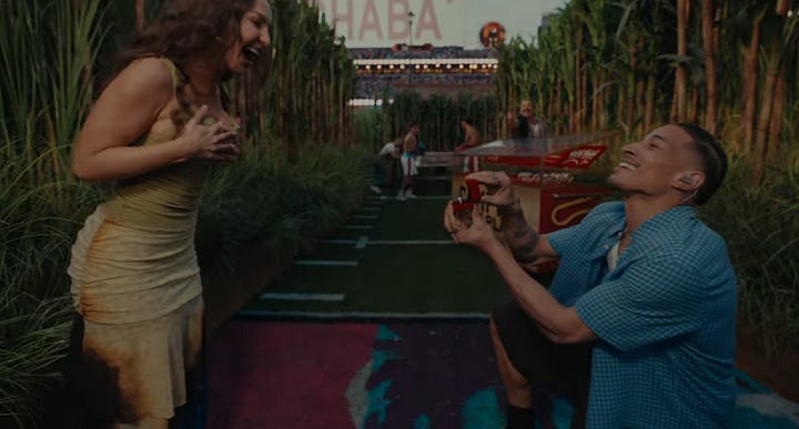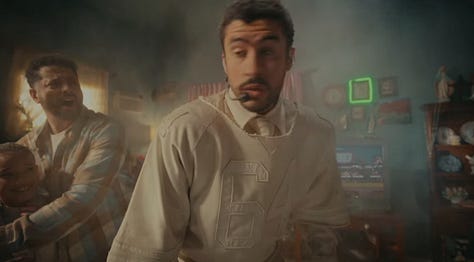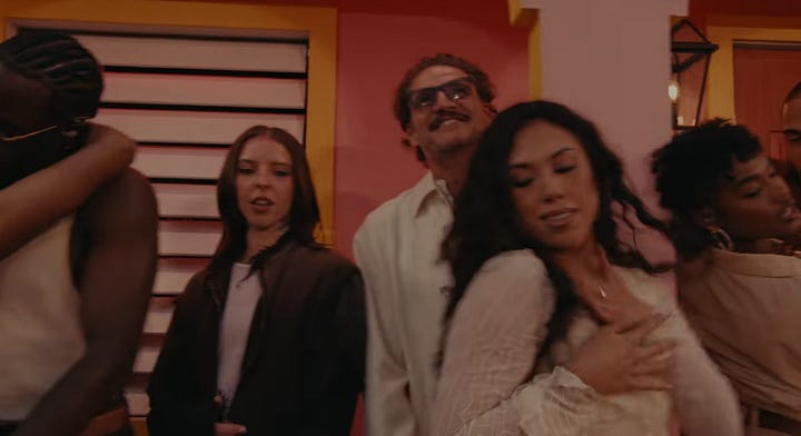 Next up, after taking a trust fall onto fellow boricuas, came “NUEVAYoL.” In this song Bad Bunny is giving love to the New York Puerto Rican community (Nuyoricans) as he sings about spending magical summers there. The scene features bodegas (with “we accept EBT signs”), barbershops, and restaurants like you’d see in Brooklyn or Washington Heights before getting a drink from Toñita — a Brooklyn icon whose Caribbean Social Club, the last surviving Puerto Rican social club, has anchored the community for decades. (And that was the owner who served him a shot.)