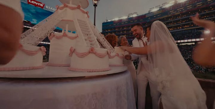 Bad Bunny then joined Gaga on stage to dance and sing “BAILE INoLVIDABLE.” The camera panned the Puerto Rican wedding reception: