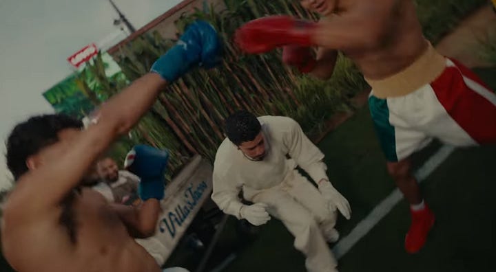 Benito continued his tour of Puerto Rican iconography, like old men playing dominoes, getting a piragua (flavored shaved ice like a snowcone), handing the football to a nail salon worker and her customer, before ducking under two boxers’ gloves (while giving some love to Los Angeles favorite Villa’s Tacos).