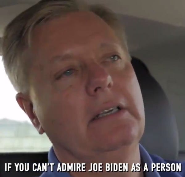 Here's the thing. Lindsey Graham and Joe Biden used to be close . They were both obviously extremely close to John McCain, and it's clear that when Joe Biden prematurely epiphanies all over the campaign stage, talking about how he's the guy to bring back the Olden Days, when he was so great at getting Republicans and Democrats to reach around the aisle for collegial bipartisan rub 'n' tugs, he's thinking of these specific relationships.