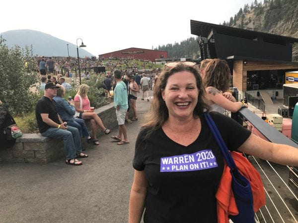 All our in-person friends except Whitefish Renee are 70 years old, like our neighbors Tika and Cliff. It's a very friendly neighborhood, all the active seniors walking around and greeting one another, and a yearish after we bought our house, we finally had them over for a drink. "We noticed your RV was gone," they said brightly, making nice-people conversation. "Where did you travel?" I looked at them, calculating, this nice blonde lady and her Hulk Hogan-looking but not gross Vietnam vet husband. "We went to Washington DC for the Women's March to protest Donald Trump," I said evenly -- we live in Montana, and every Montanan I meet is going to LEARN ABOUT ME THE HARD WAY.