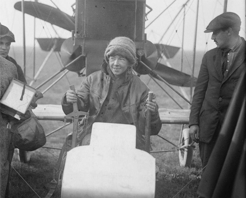 Speaking of history, how about some neat stories this week about women you should probably have heard of, but only in a less patriarchal part of the multiverse. Washington Post's "Retropolis" feature -- always a good read -- brings us a nifty story about Ruth Law, a pioneering aviatrix who set flight records well before Amelia Earhart took her first flying lessons. Law started flying in 1912, and by 1916 had captured a new American distance record, flying from Chicago to New York. When the US entered World War I, Law wanted to go to Europe and drop bombs on the Huns, but no, no lady fighter pilots until 1993 (though women did ferry planes from US factories to airbases -- even all the way to England -- during WWII). Law had to be satisfied with doing promotional stunts for "Liberty Loans." At a Washington DC parade, Law flew a Curtis biplane and dropped paper "bombs" on the crowd: