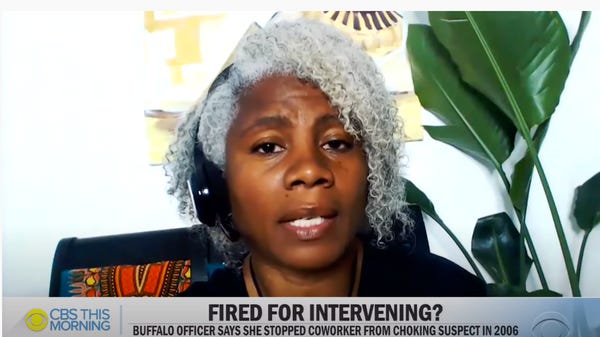 Hey, let's talk about a good cop for once! I know more than one tune. In 2006, Buffalo Police Officer Cariol Horne stopped fellow cop Gregory Kwiatkowski from choking a handcuffed Black man during an arrest. Here's how Horne, who is Black, described the scene at a domestic dispute inside the home of Neal Mack and his girlfriend.