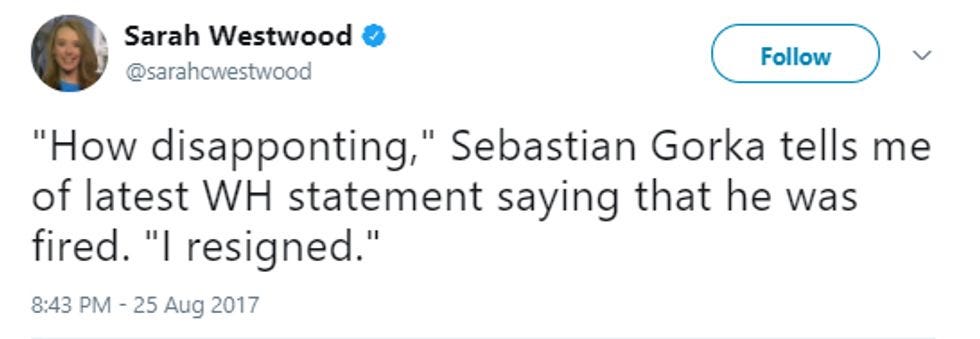 Upon hearing that he was actually "You're Fired" from John Kelly, or HR McMaster,Javanka,or whatever, Gorka called it "disappointing that someone wished to spin this." Son of a bitch, does that mean Trump's White House is lying?! WHOA, if true!