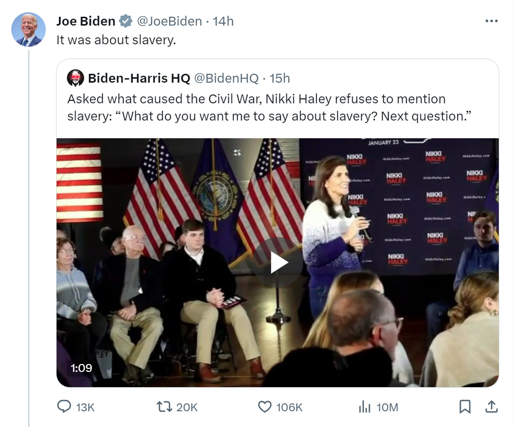 President Biden’s social media team also got in an easy dunk, though if you ask Haley, she’ll probably tell you that it’s only because she terrifies them: