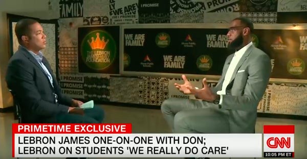 Why? Because they hurt his feelings with some incredibly mild criticism of Trump's tendency to scream bloody murder about football players protesting police brutality, during a CNN interview about the public school James is funding in Akron.