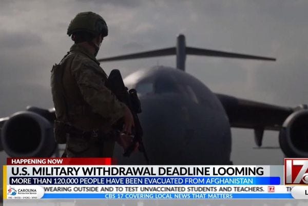 Since last week's suicide bombing outside the airport, which killed at least 170 Afghan civilians and 13 US service members, very few Afghans have been allowed through the airport gates as the military prepares to leave, although the Washington Post notes that "A U.S. official, who spoke on the condition of anonymity to discuss internal deliberations, said there had been no policy decision to exclusively admit American citizens." So it appears to be just an unofficial policy of leaving Afghans to fend for themselves.