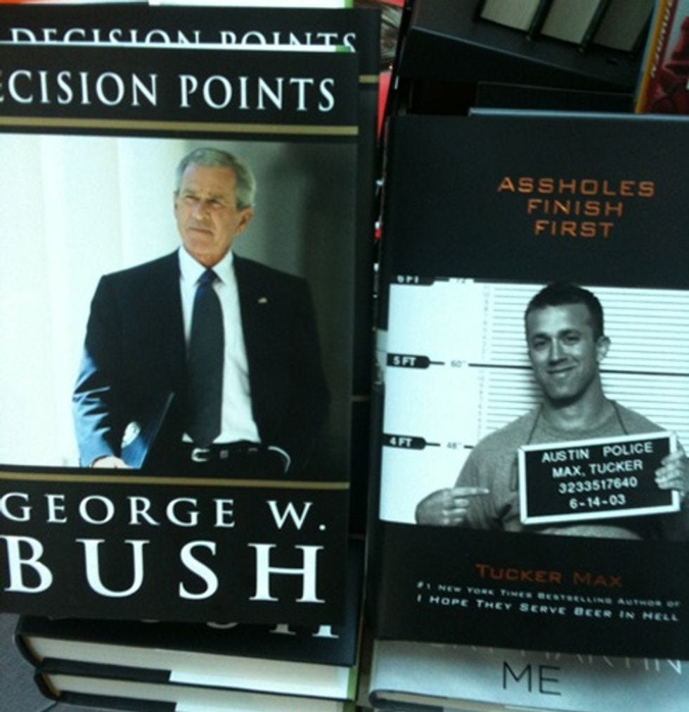 We sent Jack Stuef to the airport to get lucky with some TSA harelip. Here's the photographic evidence proving that Jack is still cowering in the airport bookstore behind a pile of Tucker Max and George W. Bush frat-prank books. [ Twitter ]