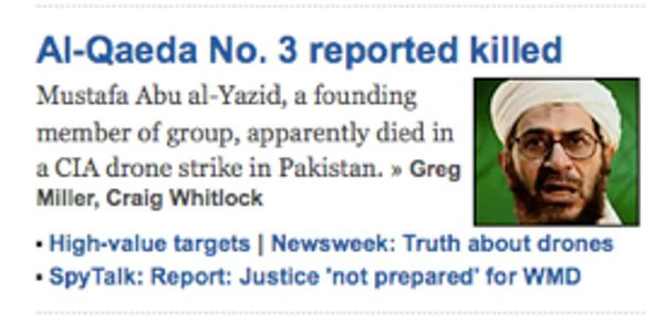 Al Qaeda No. 3 Killed For Ten-Millionth Time