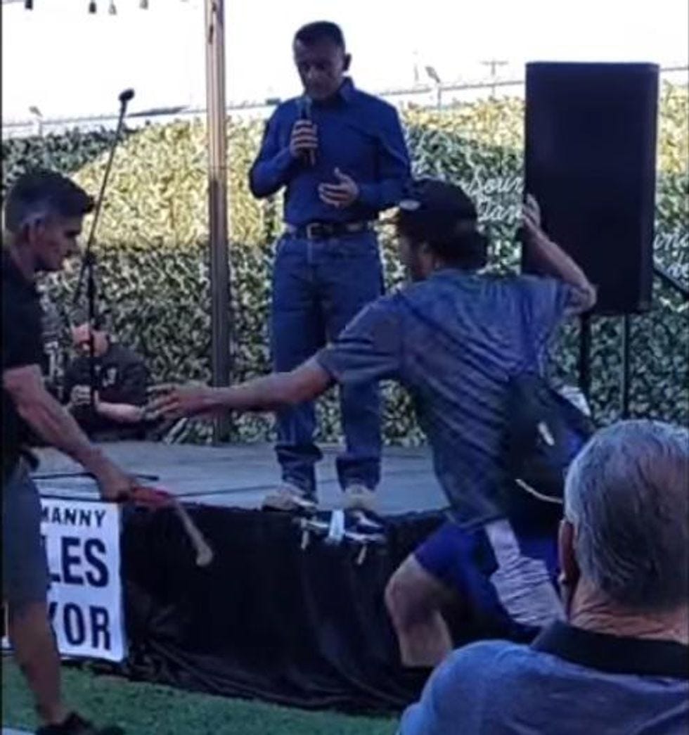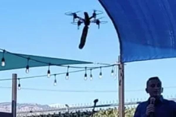 That story, being, of course, the attack of the DONGCOPTER at a rally for Albuquerque mayoral candidate Manuel "Manny" Gonzales III, who currently serves as Bernalillo County Sheriff. As the Albuquerque Journal notes, the rally had started out well enough, with one of the biggest crowds Gonzales has had yet in his campaign to oust "fellow Democrat and incumbent Mayor Tim Keller." (The mayor's race is officially nonpartisan, so party affiliation won't be listed on the ballot. They are indeed Dems, although Gonzales is apparently some kind of law-n-order Trumper. Damned if any of it makes sense.)