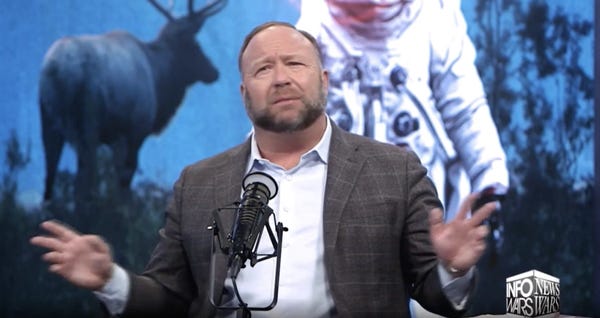 Been a long time since we've visited with Alex Jones, because he's just kind of not a thing anymore. But we make exception right now! For important news-related reason!