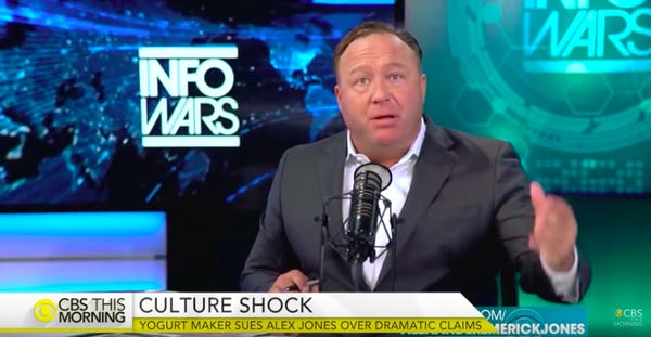 I hate Alex Jones. You hate Alex Jones. We all hate Alex Jones and agree that he is a cancer on our collective consciousness. And yet we are forced to write this long-ass post about that walking plague because his various legal entanglements are probably going to be a template for dealing with his thousand shitlord offspring as they inject their bile into our digital nervous system. In short, we are all going to have to learn to live in this world where lies can reach millions of people in a second.