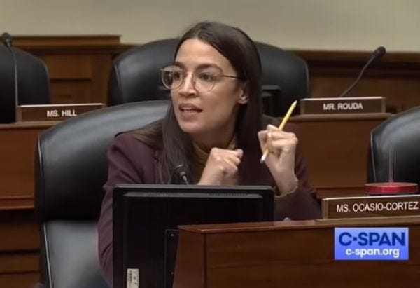 Here's Ocasio-Cortez's portion of the questioning; the full hearing can be seen here.